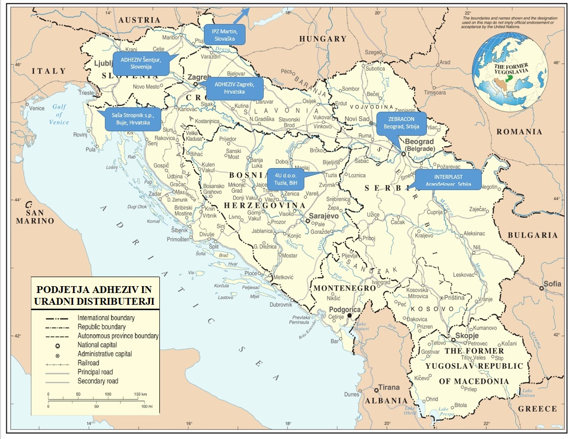Firme Adheziv v Hrvaški in Srbiji imajo svoje servisne oddelke, s katerimi pokrivajo svoje teritorije, kakor tudi naši Distributerji 4U (BiH), Interplast (Srbija) in IPZ (Slovaška).